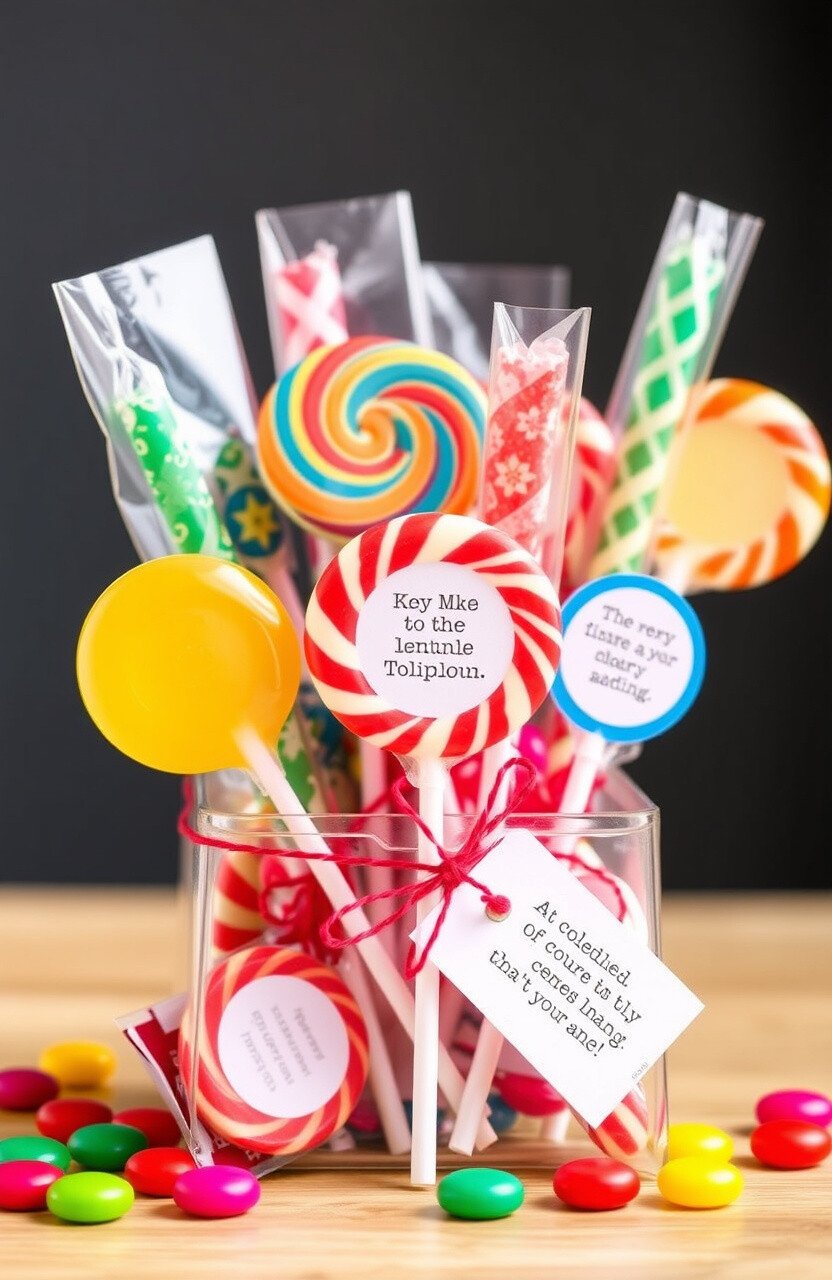 Each lollipop can have a tiny tag with a motivational quote. It’s unique and encouraging. Plus, it’s easy on the budget at about $5 per bundle.