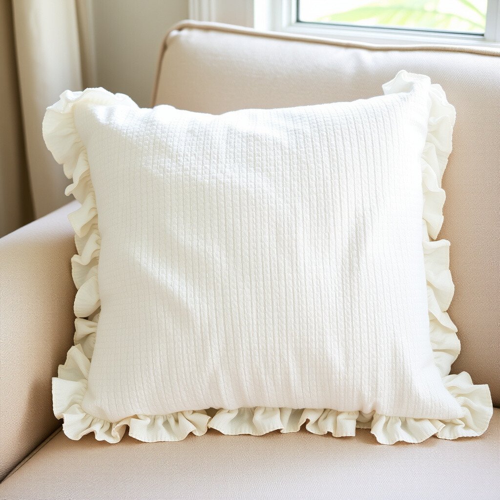 Ruffles on this pillow bring a feminine and soft touch. It’s like having a little bit of romance on your couch.
