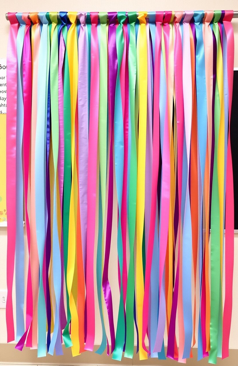 Ribbon curtains are trendy and easy to make. Personalize by choosing colors that match your classroom theme.