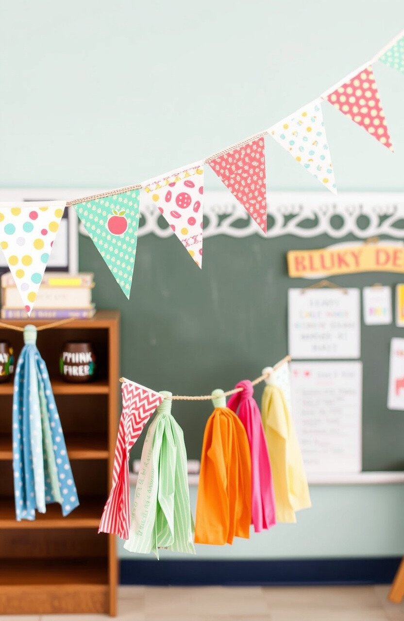 Fabric buntings are trendy and easy to make. Personalize by choosing colors that match your classroom theme.