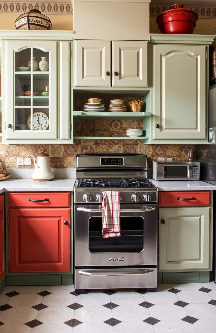 Mix old with new by pairing vintage cabinets with modern appliances. This creates an eclectic and personalized space.