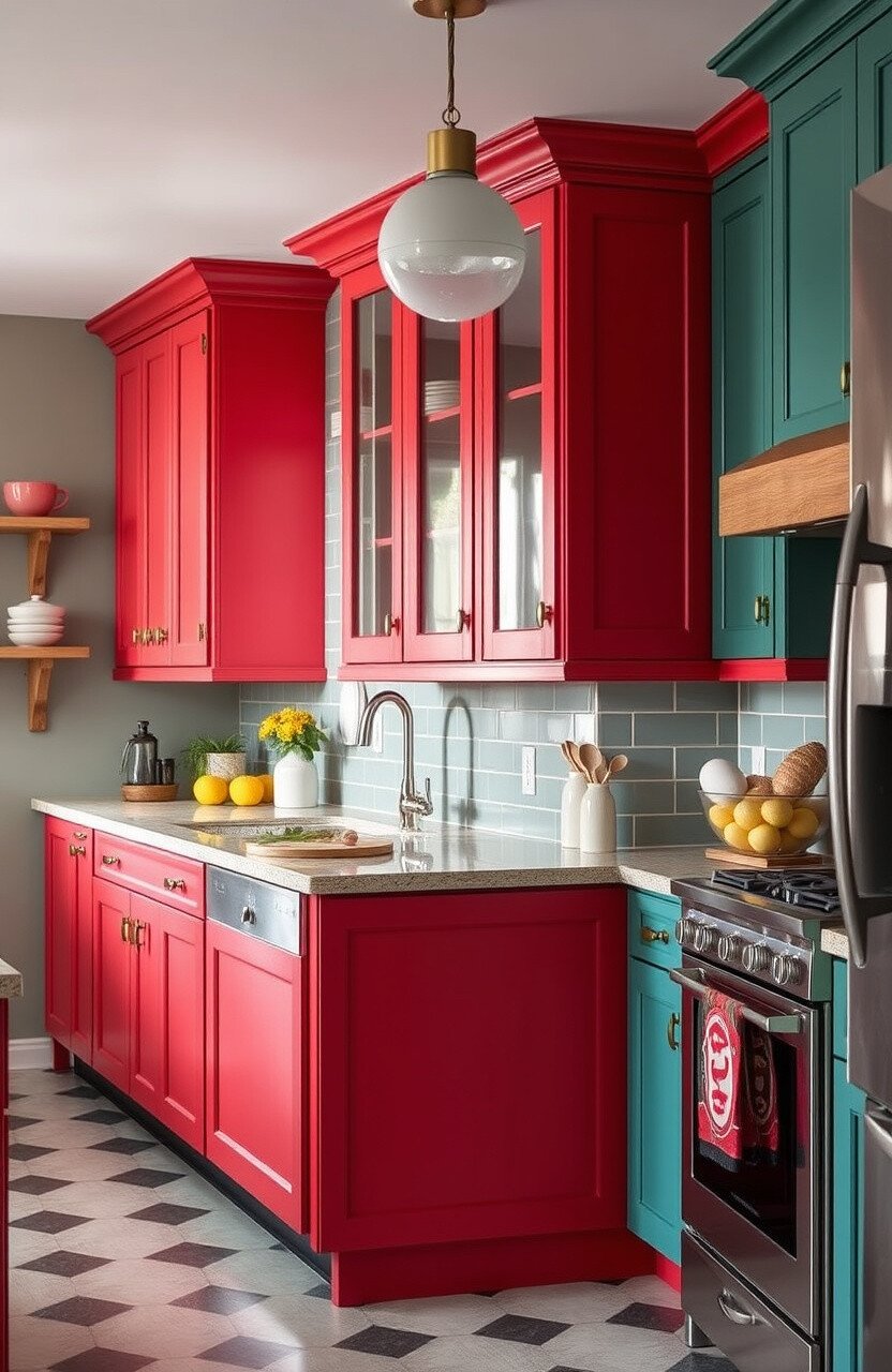 Using bold colors for your cabinets can instantly energize your kitchen. Think vibrant blues, greens, or even red!