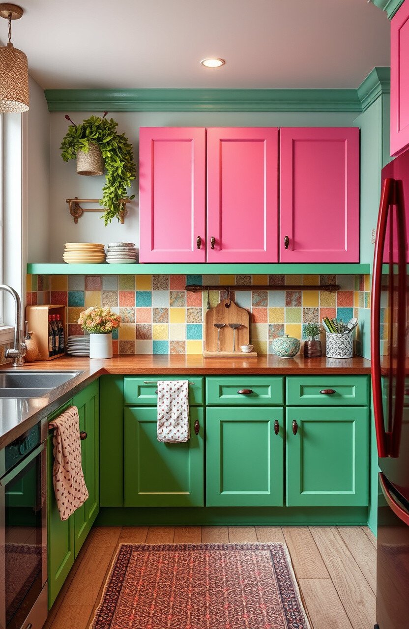 This idea allows you to play with color without overwhelming the space. It’s a trendy choice that adds depth to your kitchen.
