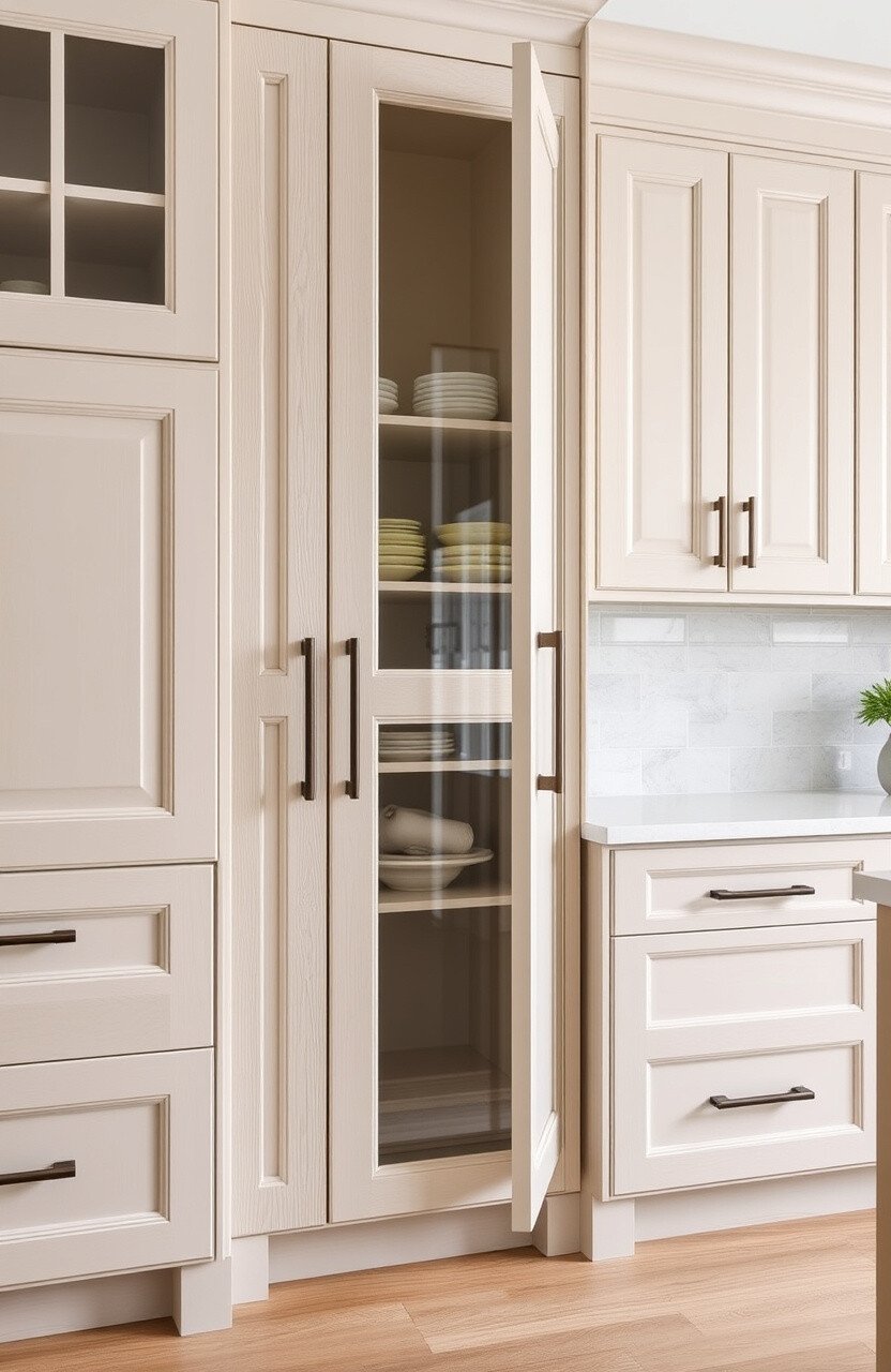 Glass-front cabinets bring elegance and sophistication to your kitchen. They allow you to display your beautiful dishware while keeping them protected.