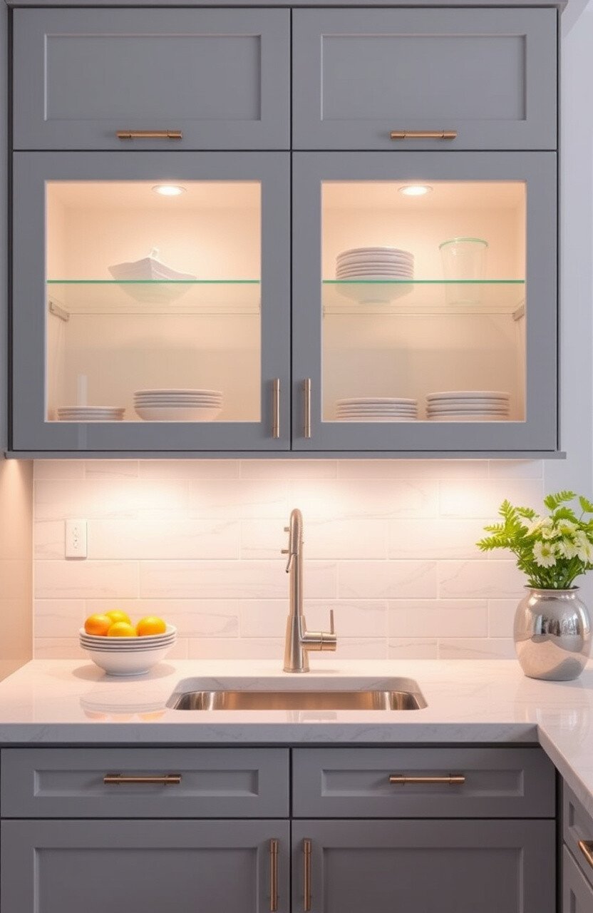 Consider LED lights for an energy-efficient option. They add a modern touch and highlight your cabinets beautifully.