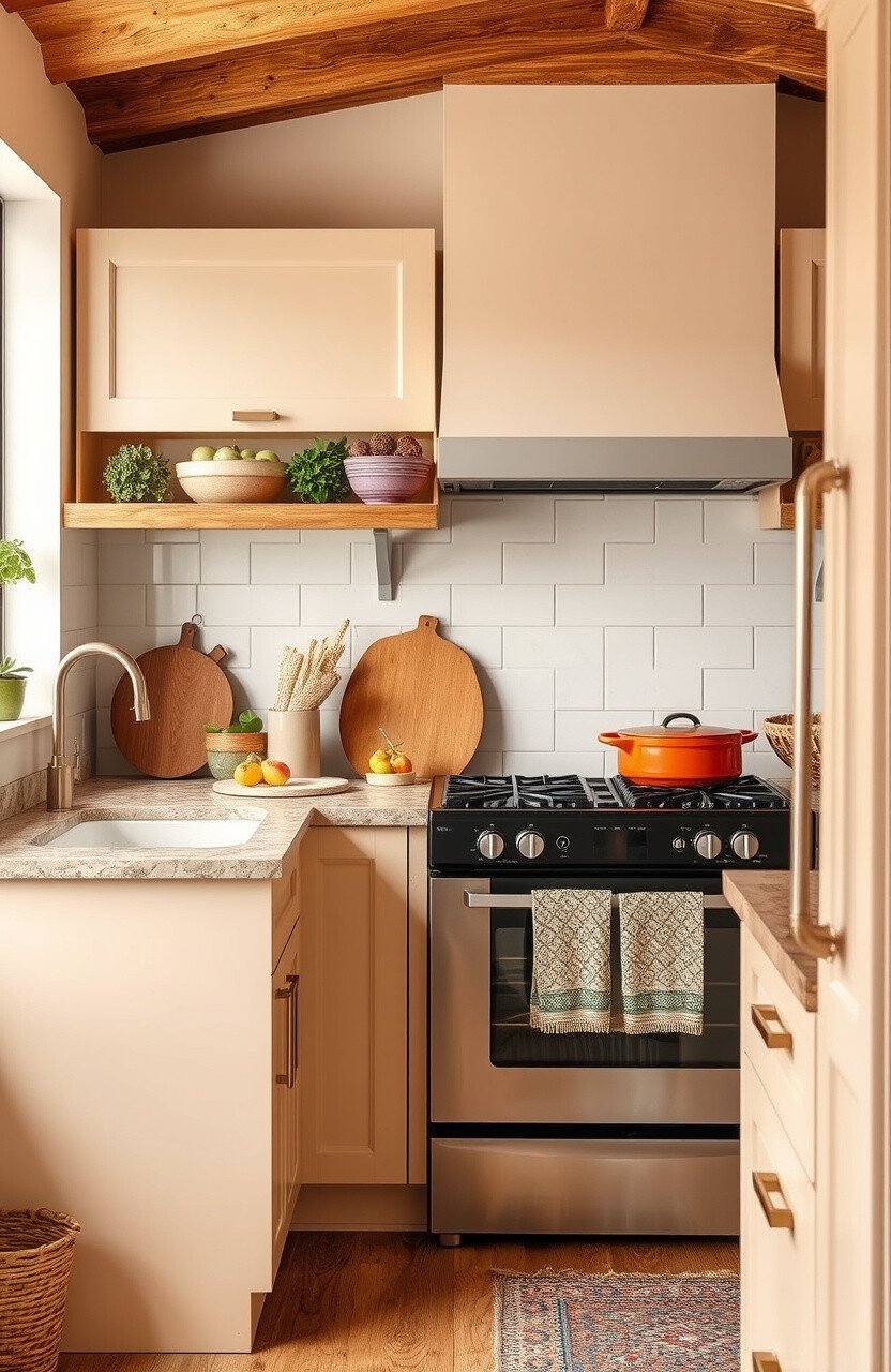 Warm tones create a cozy and inviting atmosphere. They’re perfect for creating a welcoming and homey kitchen.