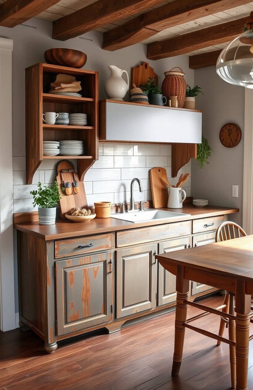 Repurposed furniture adds character and history to your kitchen. It’s perfect for creating a unique and personalized space.