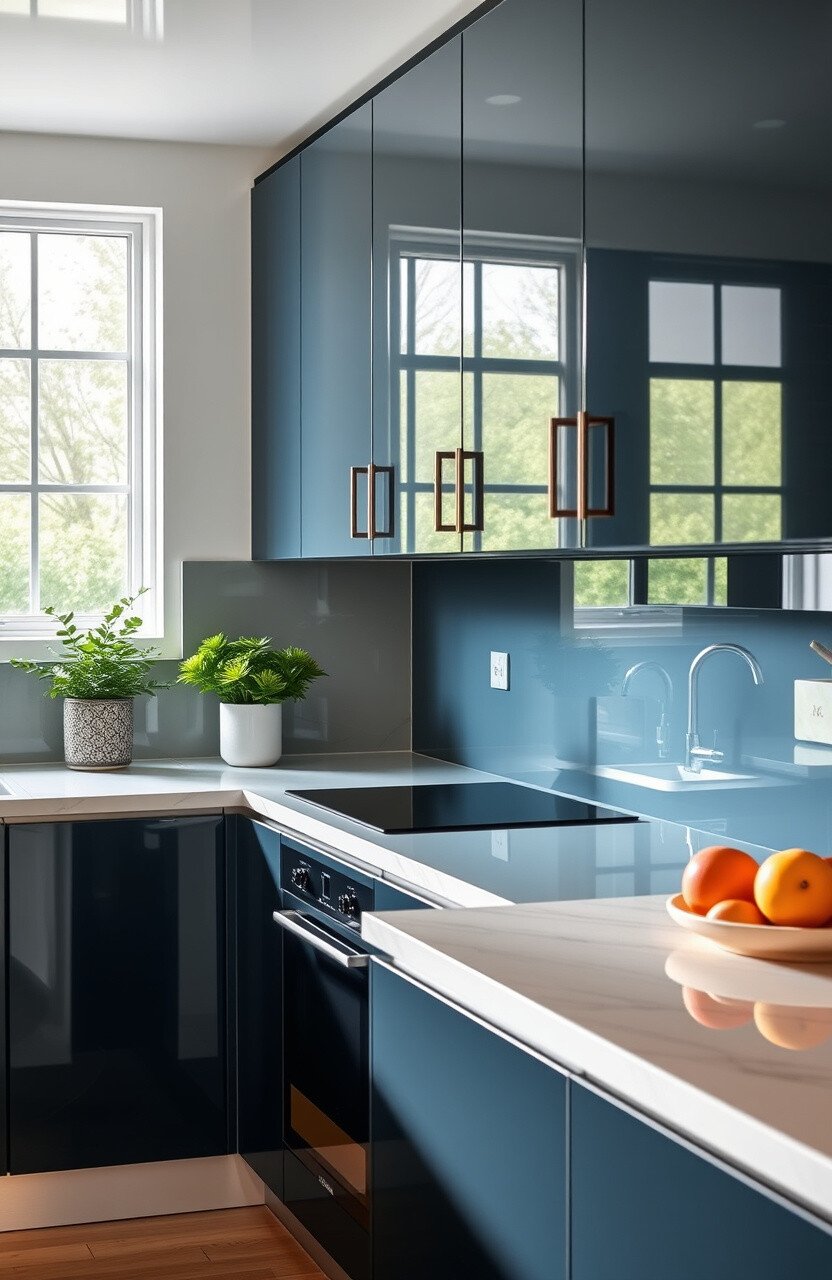 High gloss cabinets add a touch of luxury and modernity. They reflect light, making the space feel brighter.