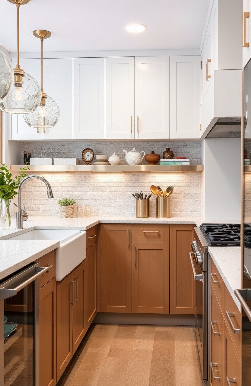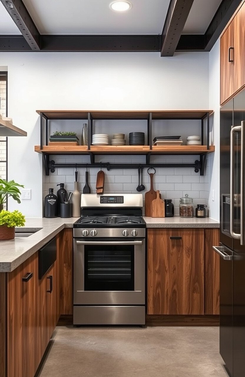 Consider mixing and matching different materials for a unique look. Wooden shelves with metal brackets can add a rustic charm to your kitchen.