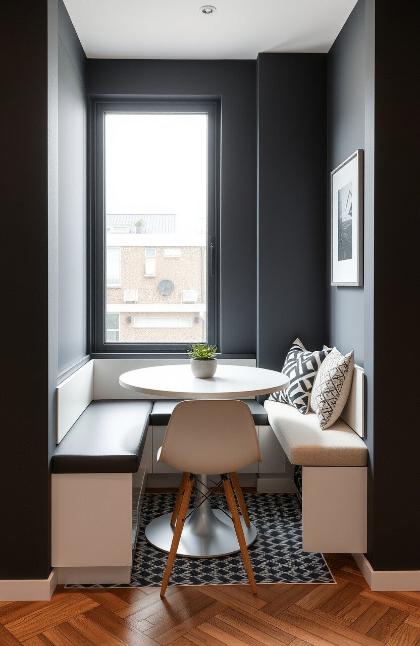 Personalize with geometric patterns or a single piece of art. This nook can be both stylish and budget-friendly.