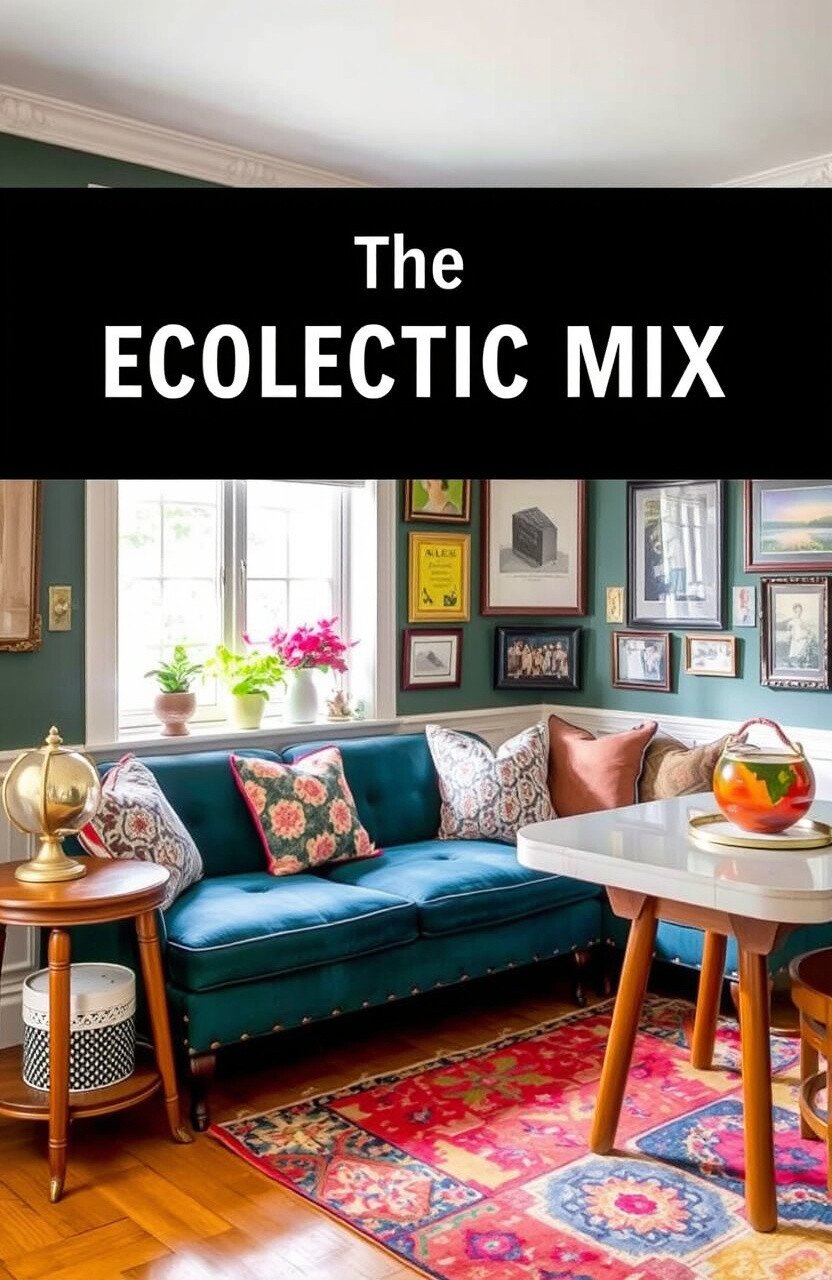 Consider adding a gallery wall for visual interest. A colorful rug can tie the eclectic elements together.