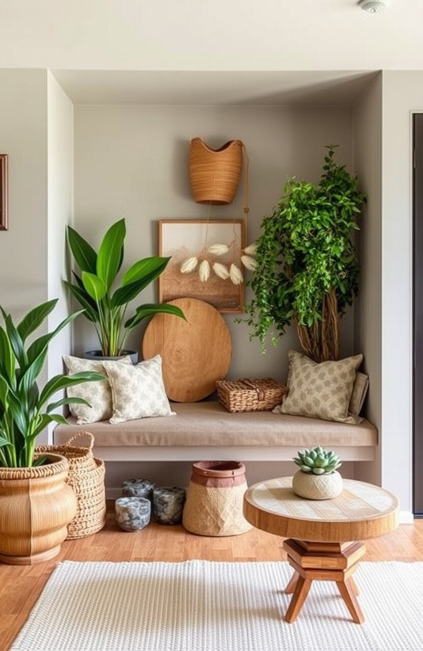 Consider adding a small fountain for tranquility. A soft, neutral rug can tie the space together.