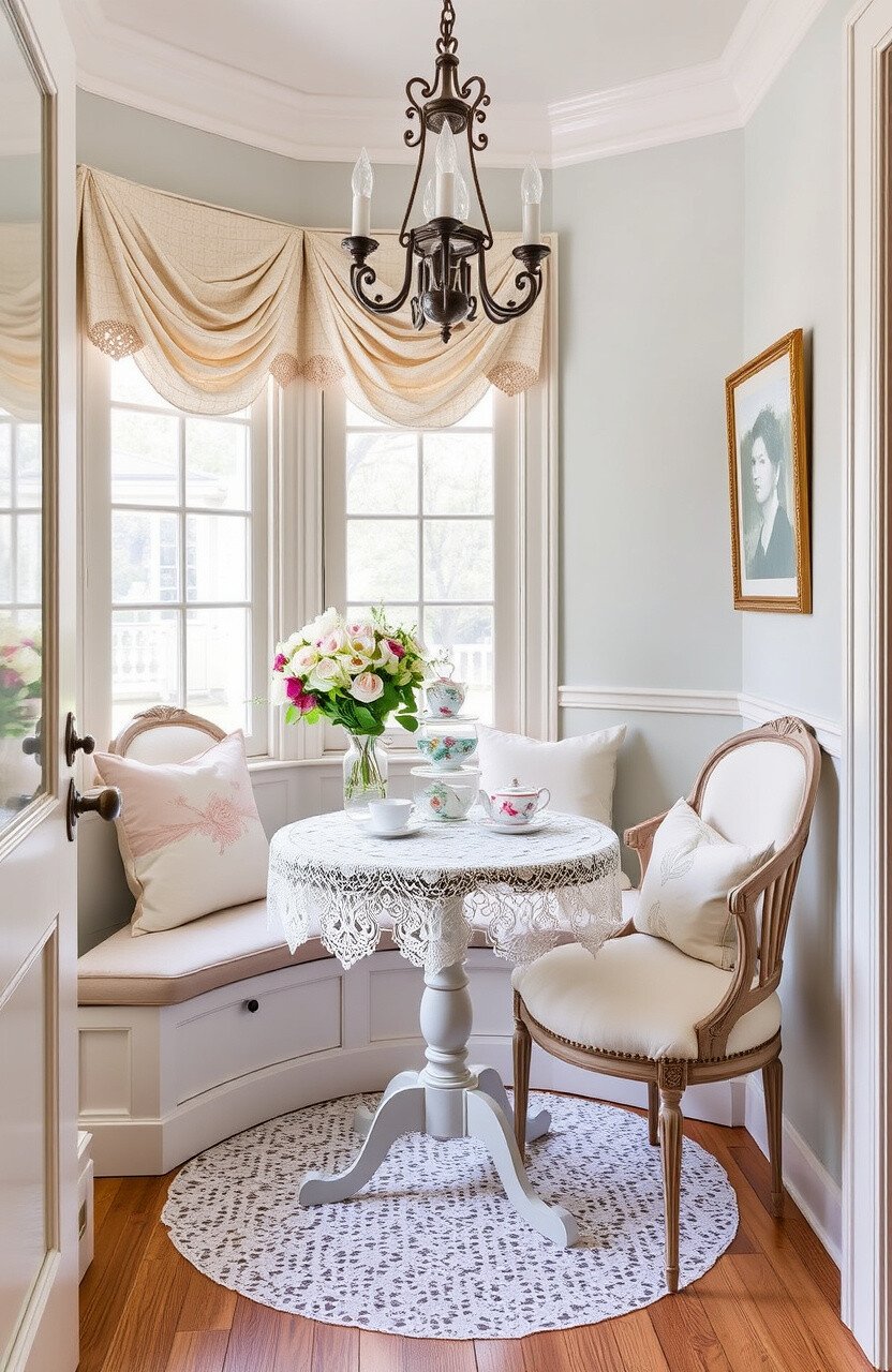 Fine china and delicate decor make this nook a refined setting. It’s perfect for a touch of elegance and grace.