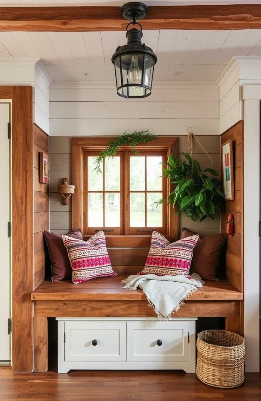 This nook’s unique charm lies in its simplicity and warmth. Adding a few colorful cushions can make it even more inviting.