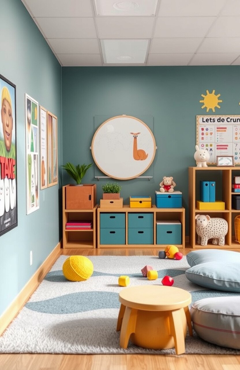 Create a calm space with soft mats and calming decor. It’s a sanctuary for stressed minds.