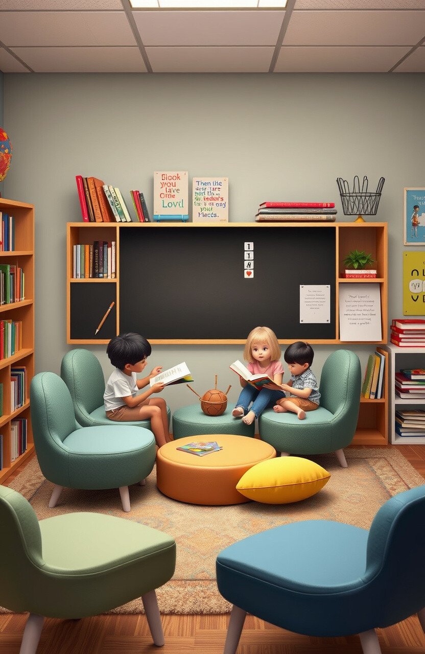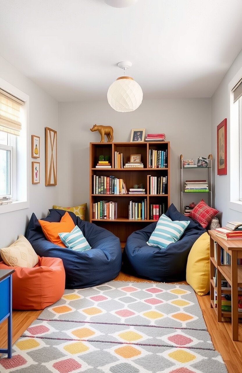 Picture a corner filled with bean bags and soft pillows. It’s like a mini escape for kids who love books.