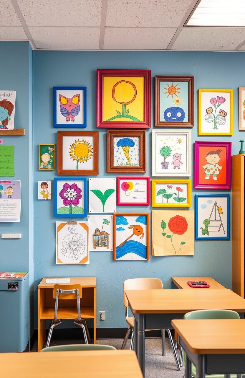 Display student artwork on a dedicated wall. It turns the classroom into a vibrant gallery.