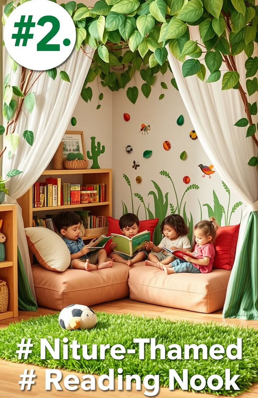 Imagine a cozy corner with cushions and a leafy canopy where children can immerse themselves in books. This idea brings nature’s calm into the classroom.