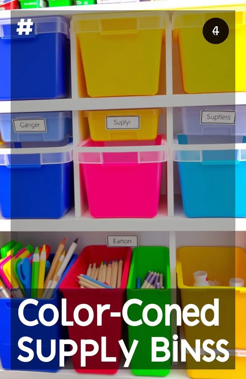 Color-coded bins for supplies teach organization and responsibility. It’s a rainbow of order in a bustling classroom.