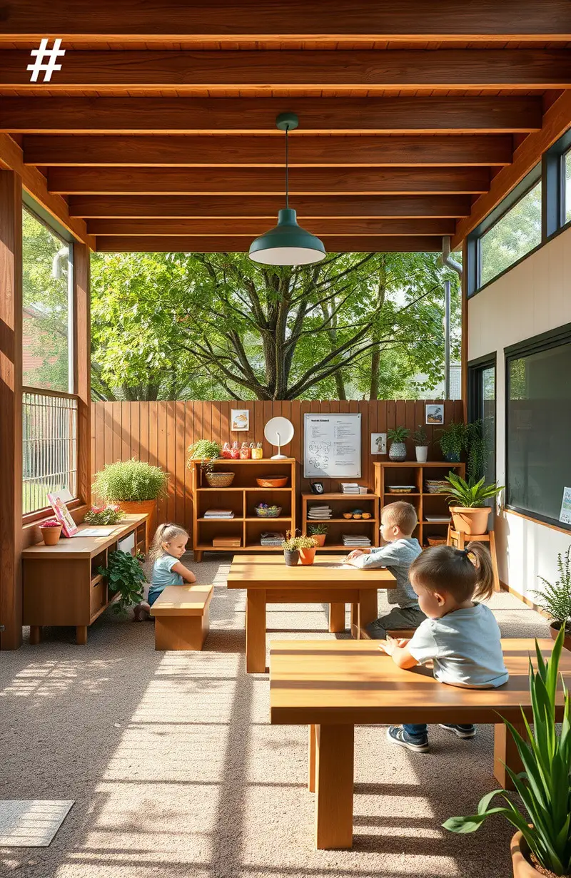 An outdoor classroom brings learning to life with fresh air and nature. It’s an inspiring setting for young learners.