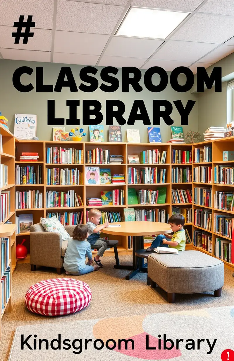 A classroom library with comfy seating invites children to explore the world of books. It’s a quiet retreat for reading adventures.