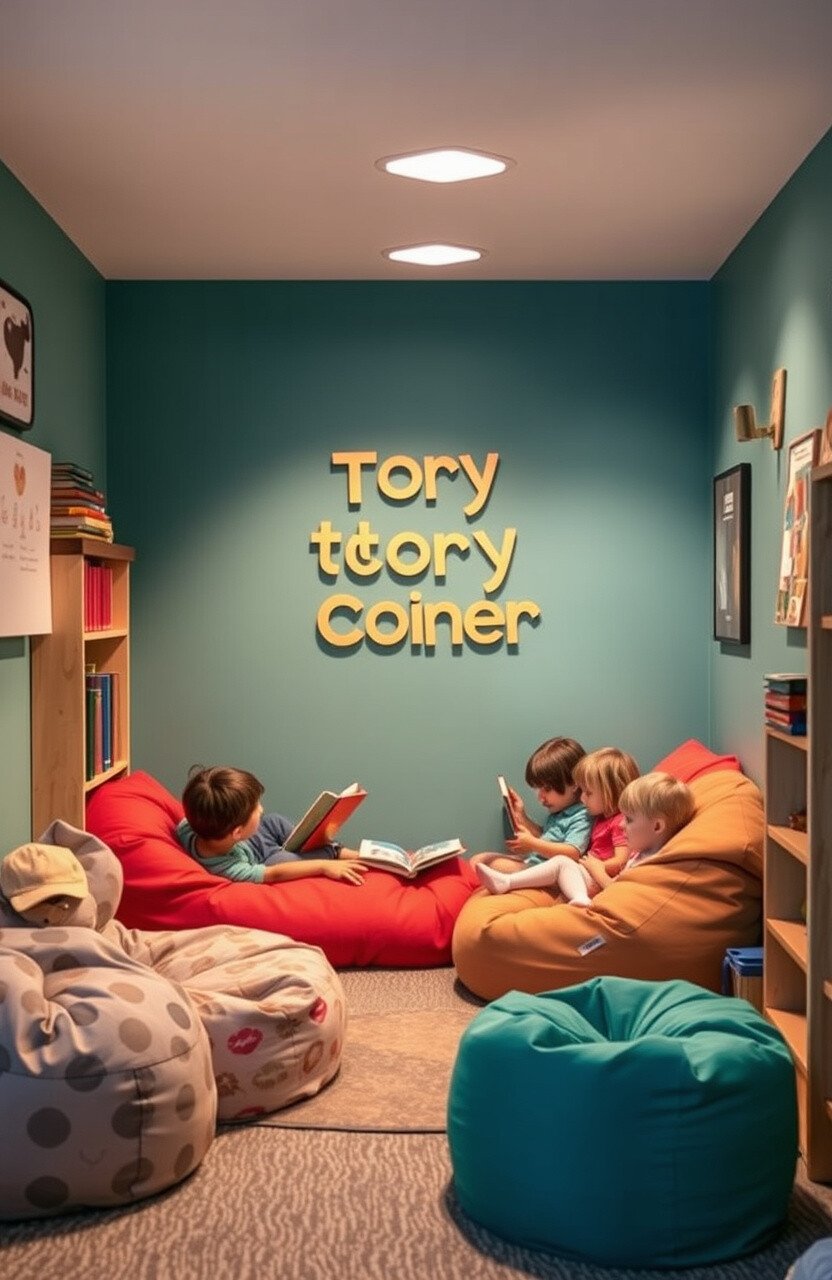 A snug corner with bean bags and soft lighting invites children to lose themselves in stories. It’s a haven for little book lovers.