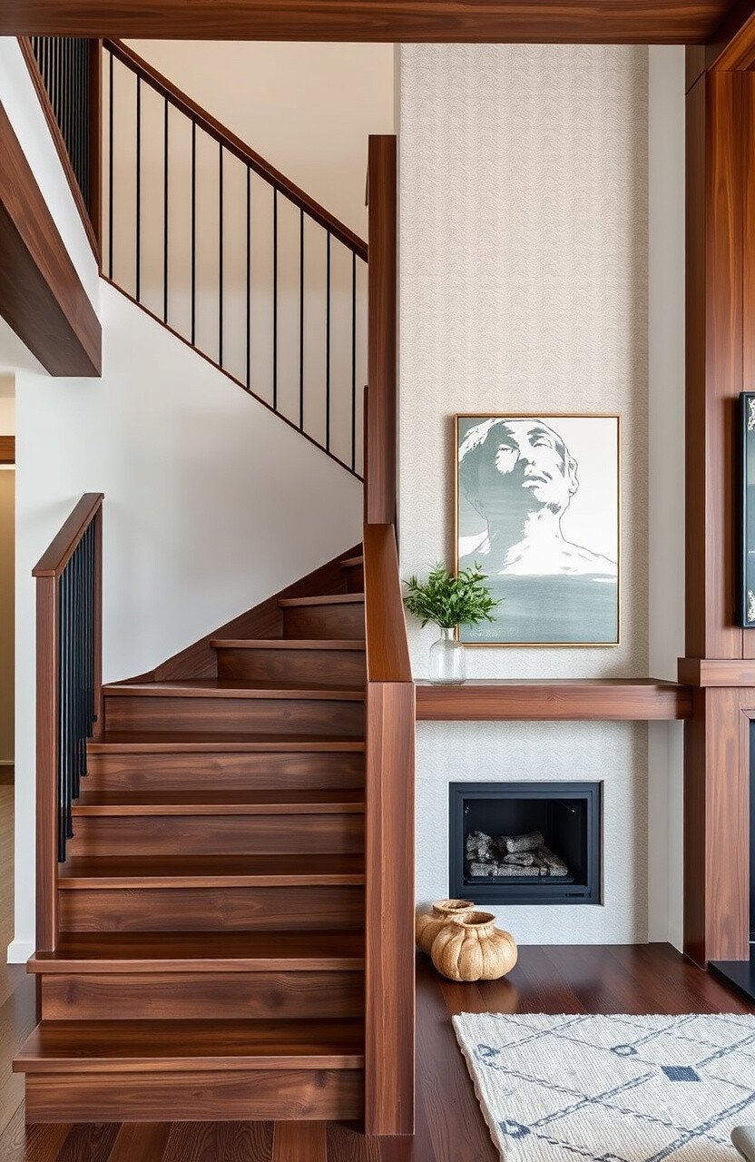 Traditional straight staircases never go out of style. They offer a simple elegance that complements any fireplace.