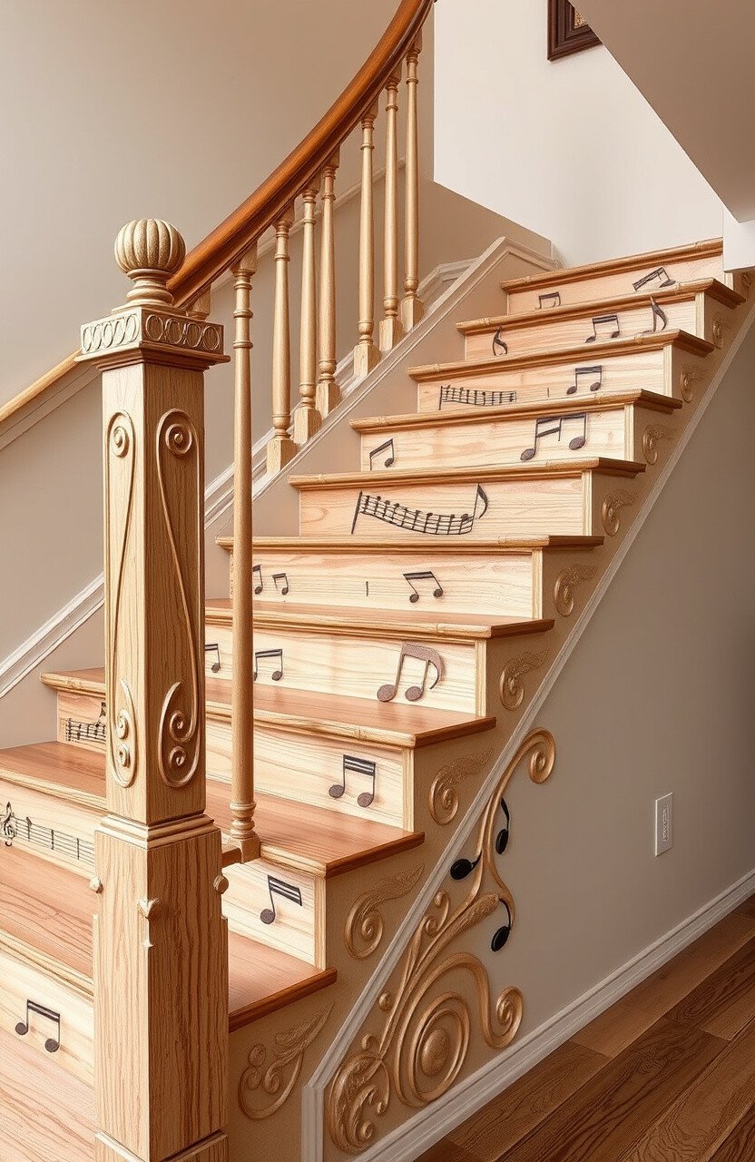 Music note carvings are perfect for music lovers. They bring a sense of rhythm and melody to your staircase.