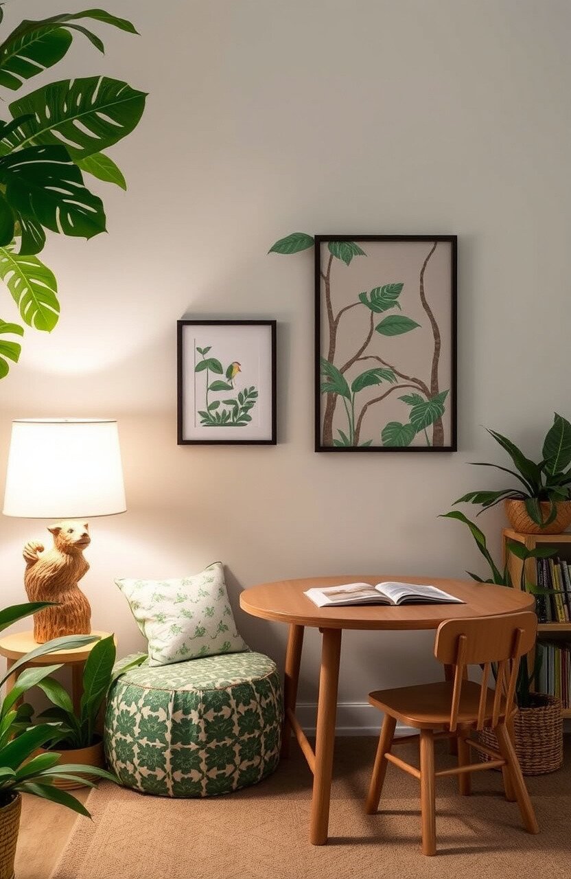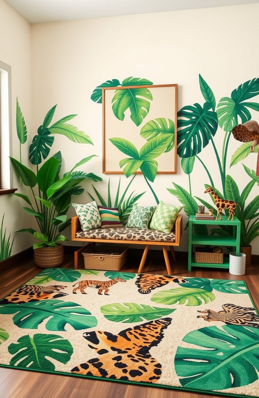Incorporate tribal patterns in pillows, throws, or wall art. These add a cultural touch to the jungle theme.