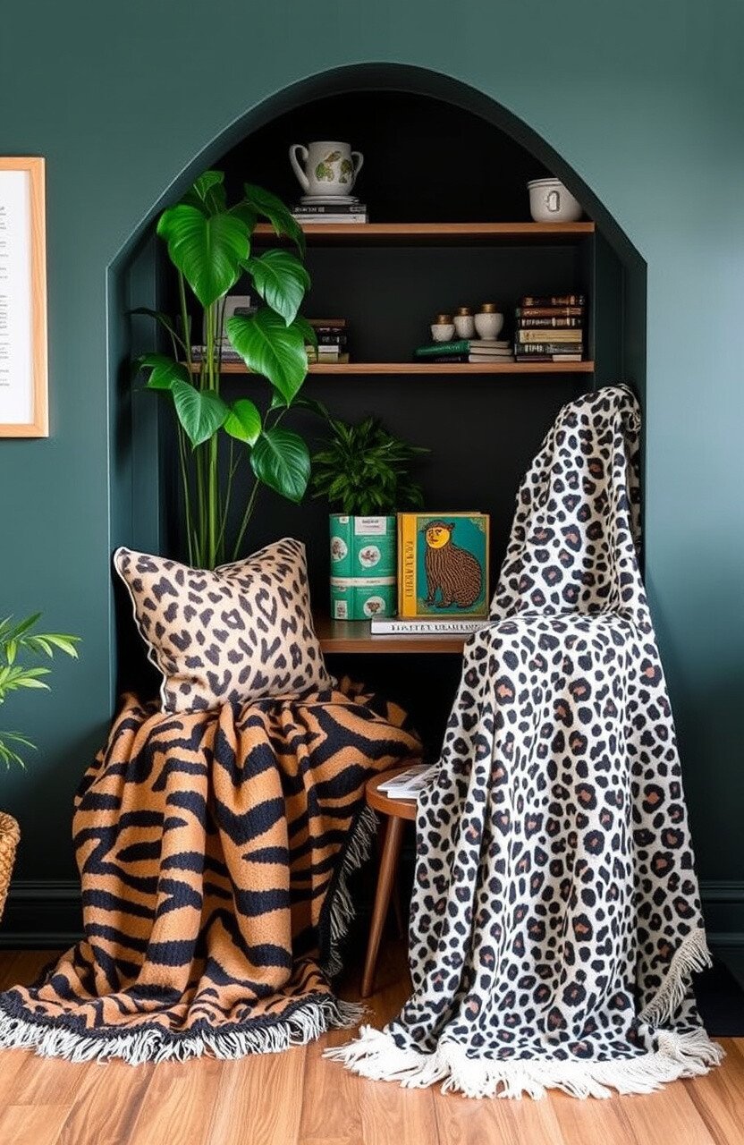 Throw blankets with animal prints add warmth and style. Perfect for wrapping up on a chilly day.