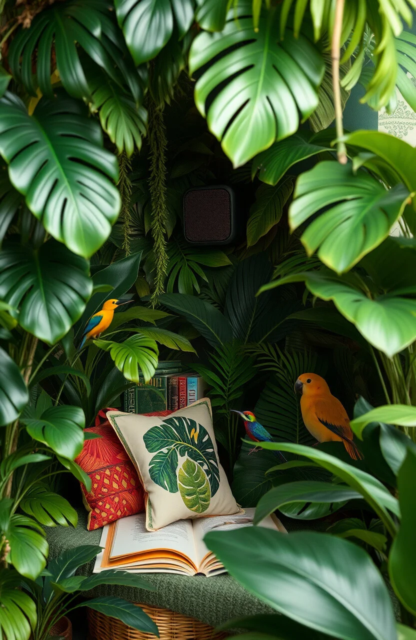 Set up a small speaker to play jungle sounds. Imagine the chirping of birds and rustling leaves as you read.