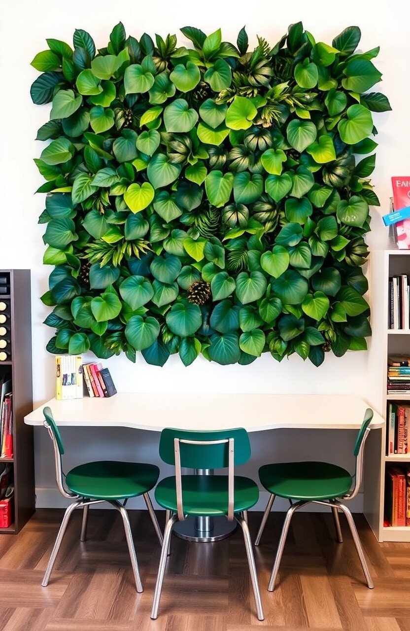 Create a wall of leaves using faux foliage. It’s like having a vertical garden.