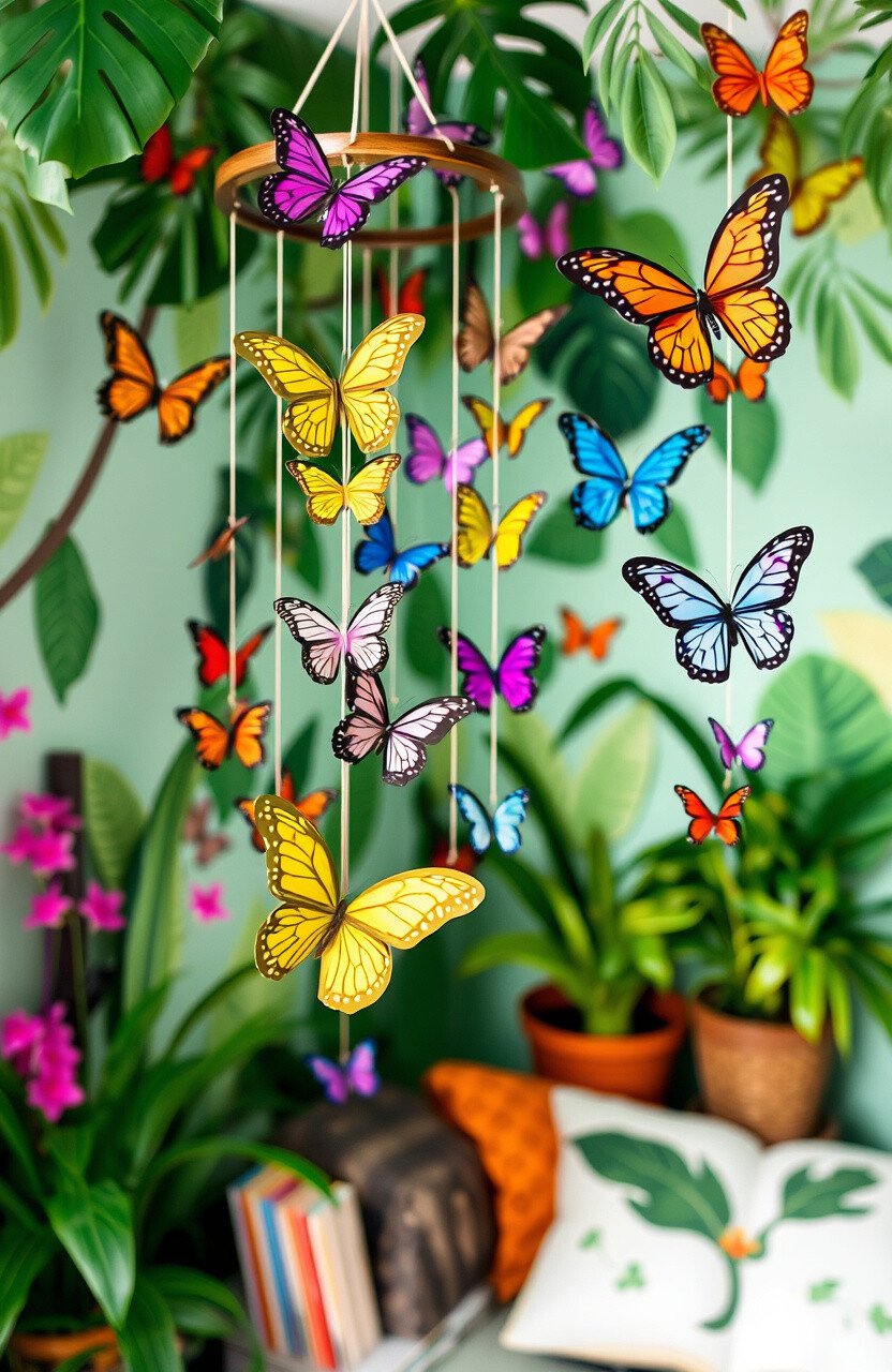 Butterflies fluttering above bring the jungle to life. They add a magical touch to the nook.