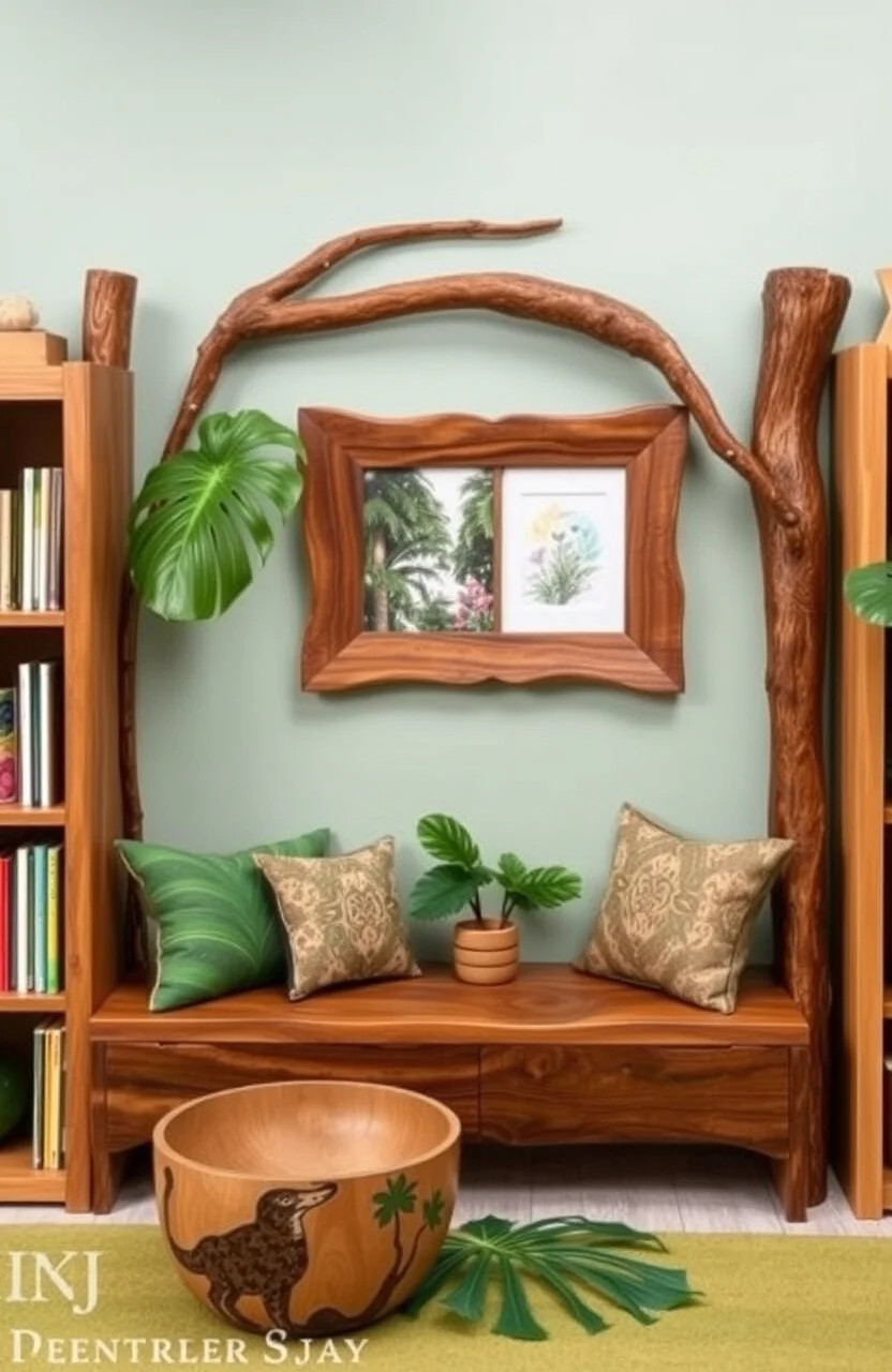 Install bamboo shelves to hold books and jungle-themed trinkets. Bamboo brings an authentic jungle vibe.