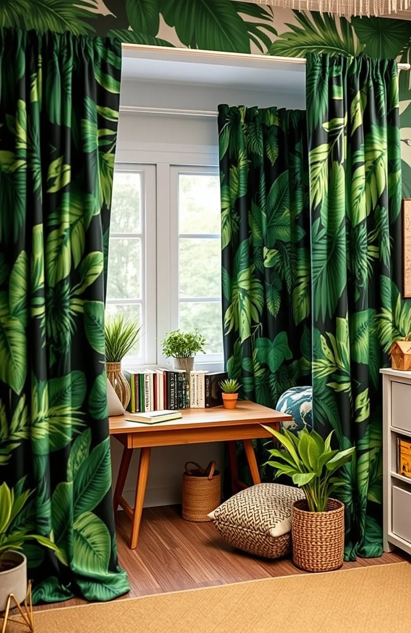 Choose curtains with lush, leafy designs. They frame the nook and add privacy.