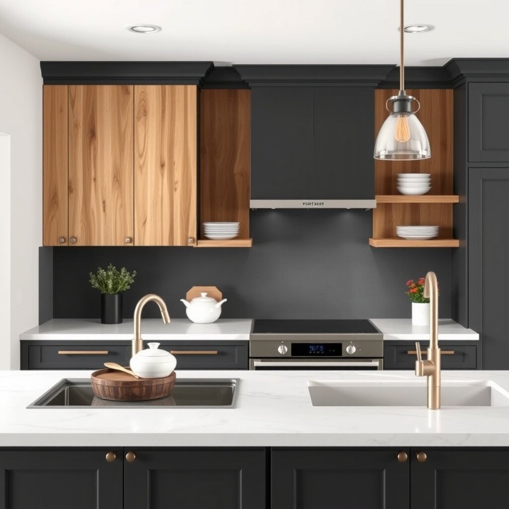 This option suits those who appreciate a blend of contemporary and rustic styles. Charcoal adds depth, while wood brings warmth. Consider open shelving to keep the space feeling open and airy.