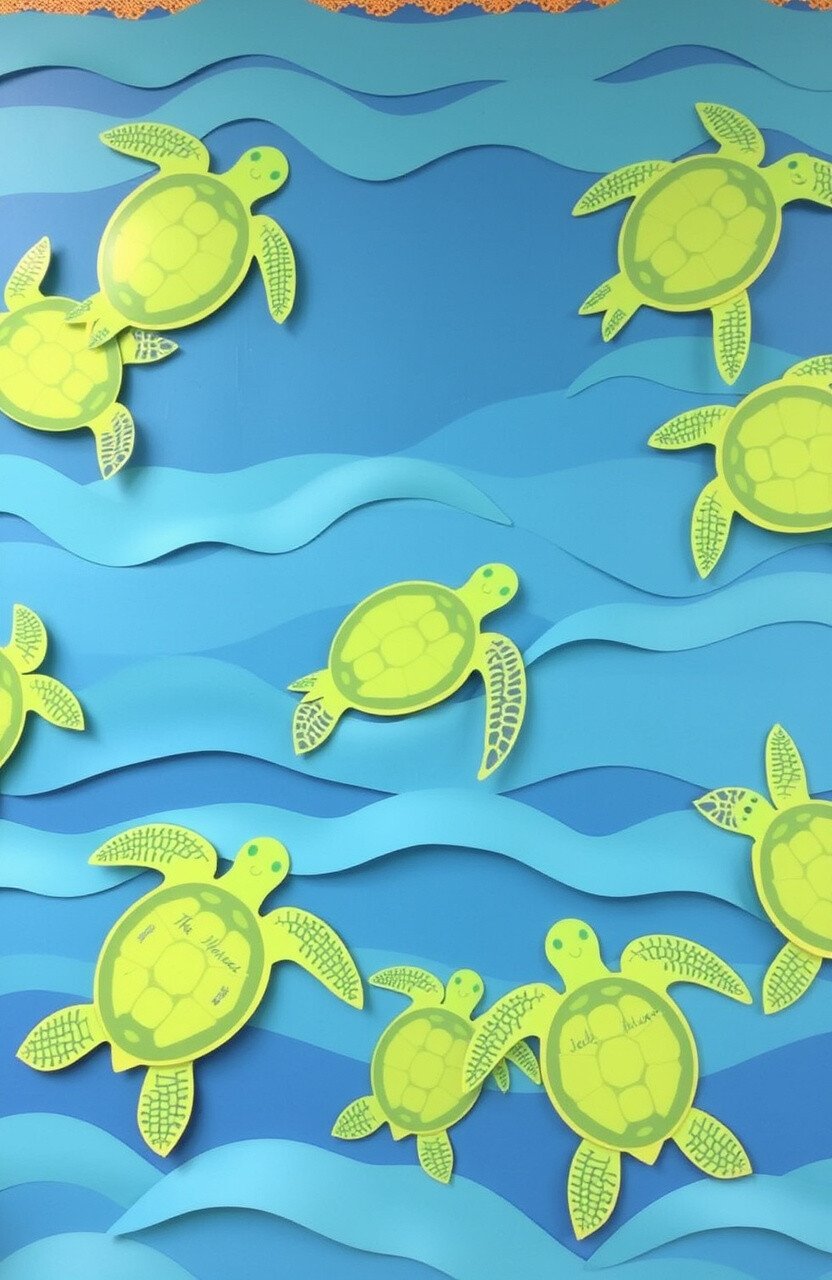 Invite students to write messages or facts on turtle cutouts. This adds an educational element and makes the board more interactive.