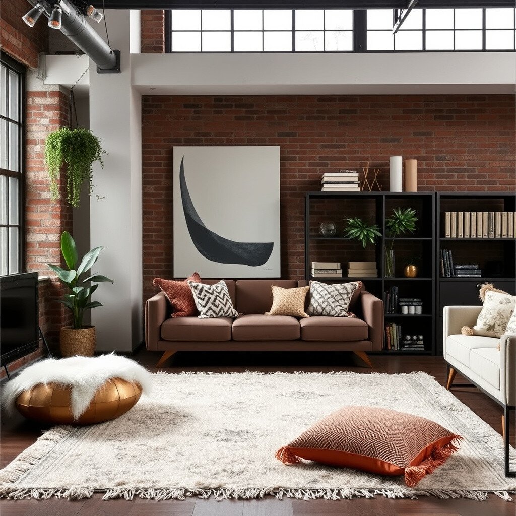 Textiles bring warmth to industrial spaces. Think fluffy rugs, soft throws, and plush pillows. They make a space feel inviting and comfortable.