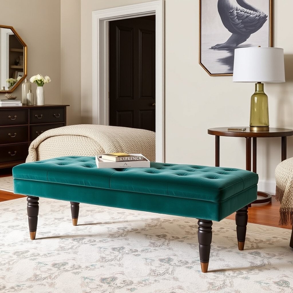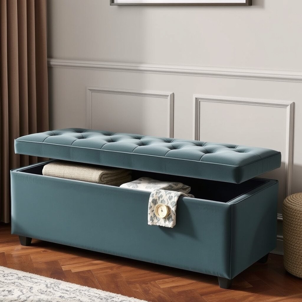 A velvet storage bench is both stylish and practical. It offers extra seating and hidden storage, perfect for keeping clutter at bay.