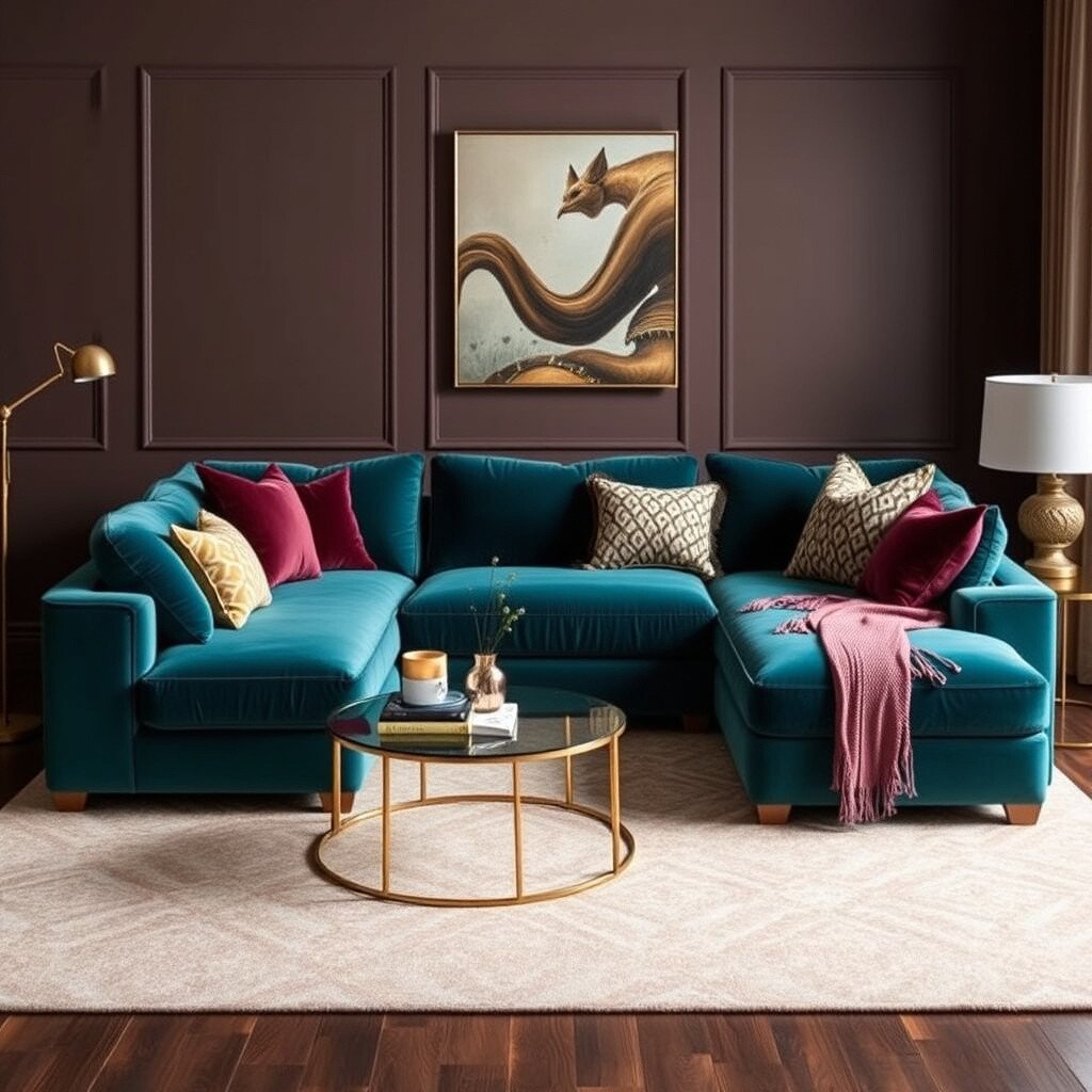 For large families or those who love to entertain, a velvet sectional is a dream. It’s spacious, comfortable, and oh-so-inviting.