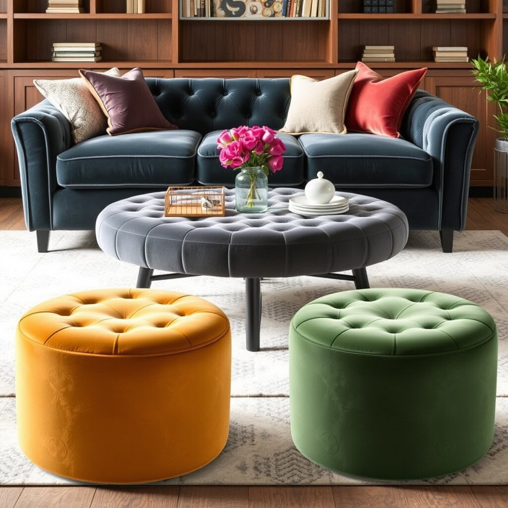A velvet ottoman is a versatile piece that can be used as a footrest, coffee table, or extra seating. It’s perfect for small spaces or to add a touch of luxury to your decor.