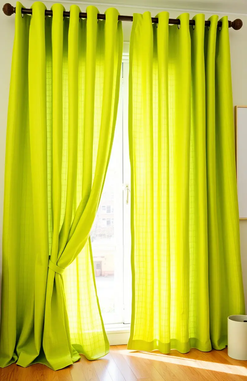 Lime green linen curtains are fantastic for adding a fresh, natural vibe. Linen is a breathable fabric that feels airy and light.