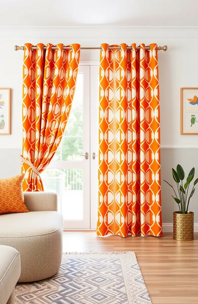 Orange geometric curtains can create a lively and energetic space. The patterns add interest and depth to your decor.