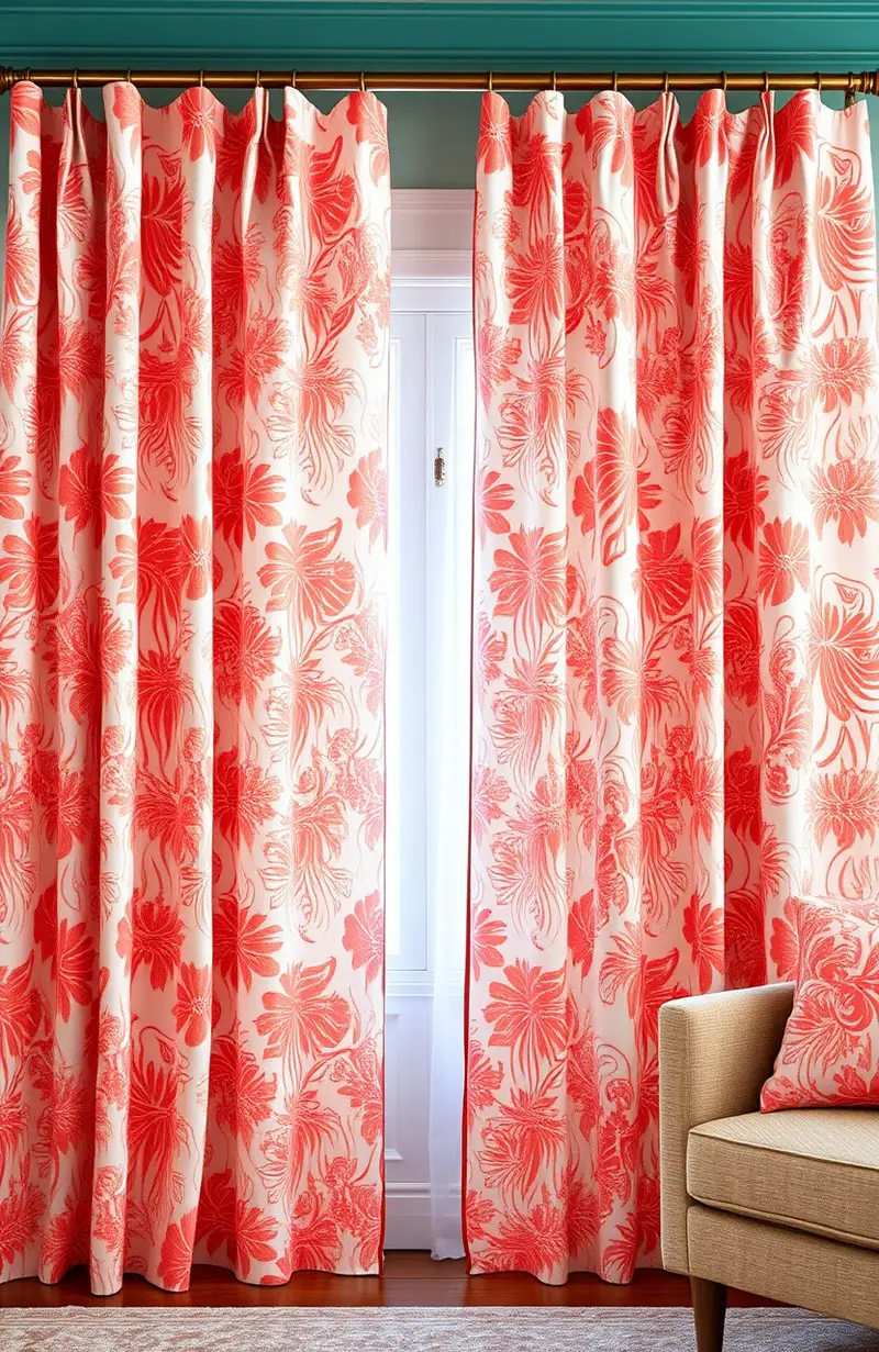 8. Coral Patterned Curtains