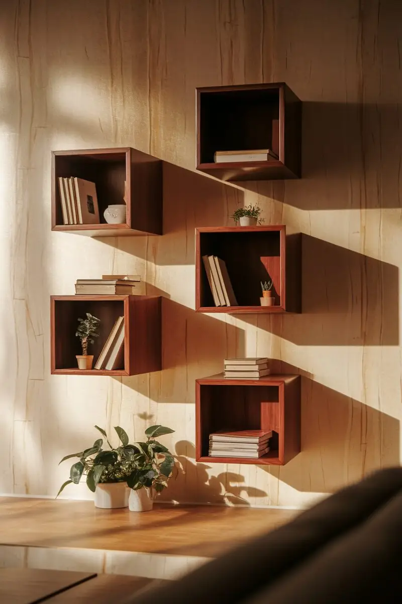 Floating cube shelves are a modern twist that adds a fun dimension to your walls. Their unique shapes can create a playful, eye-catching display.