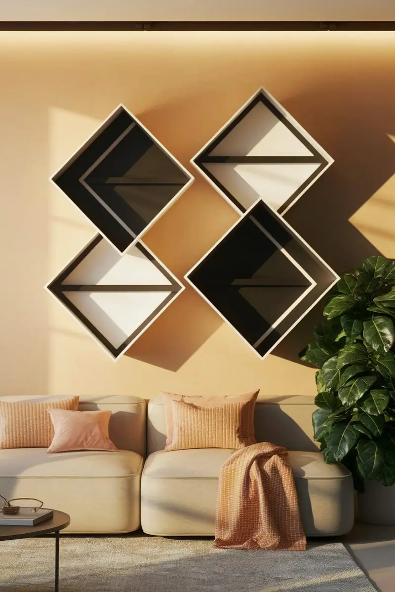 Geometric wall shelves are a fun and creative way to display your belongings. They come in various shapes, like hexagons or triangles, adding a playful touch to any room.