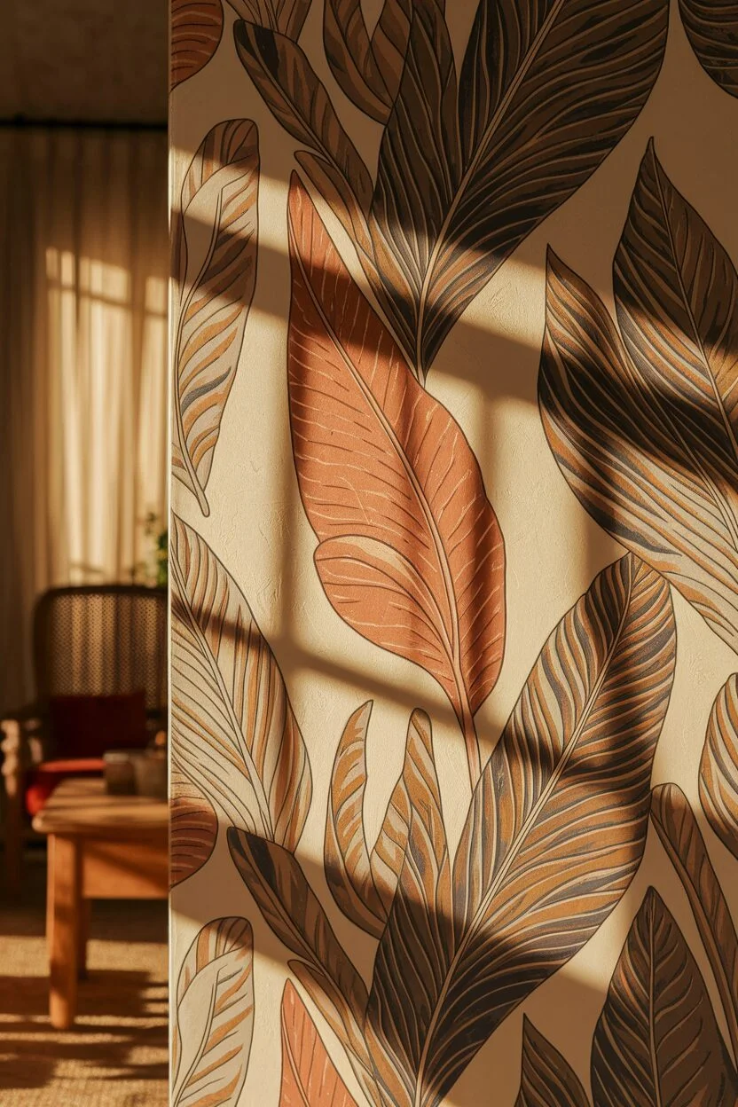 Bring the outdoors inside with a botanical wallpaper that’s bursting with life. Think large leafy greens, exotic flowers, and perhaps even some playful monkeys hidden among the branches. This wallpaper idea is like having your own indoor garden, adding freshness and vitality to any room.