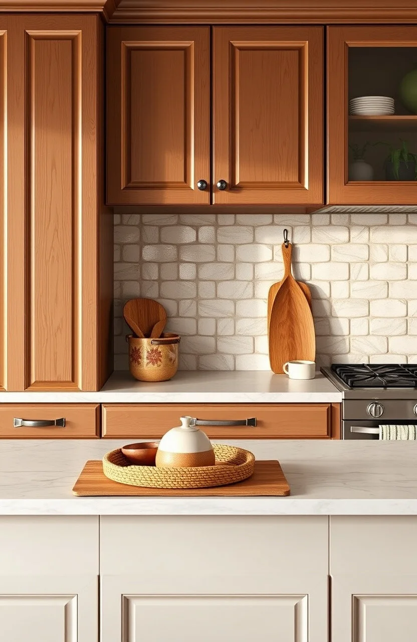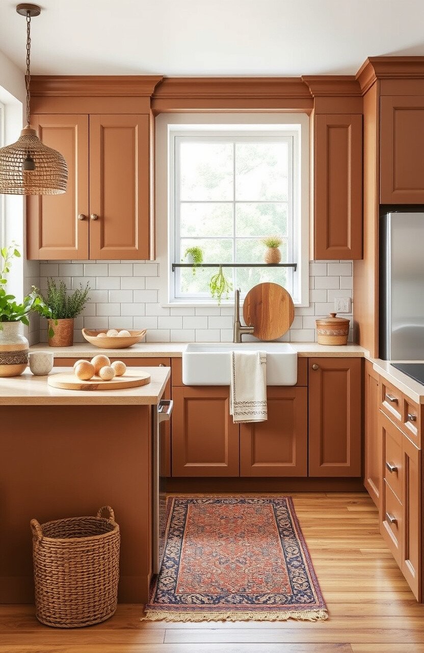 Imagine stepping into a room that instantly wraps you in a cozy, bohemian vibe. You can almost feel the warmth emanating from the cabinets, perfectly complementing the eclectic decor that surrounds you.