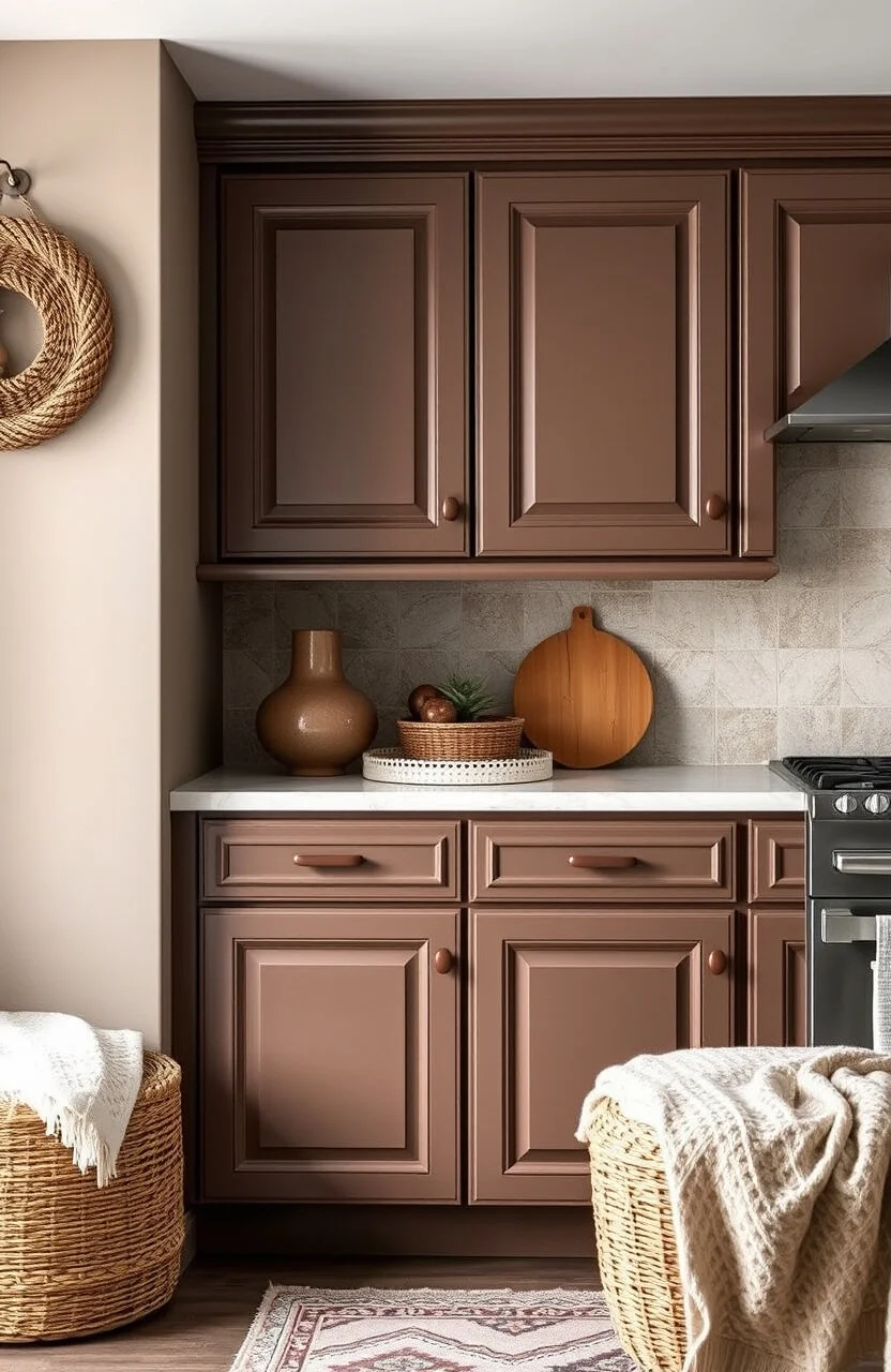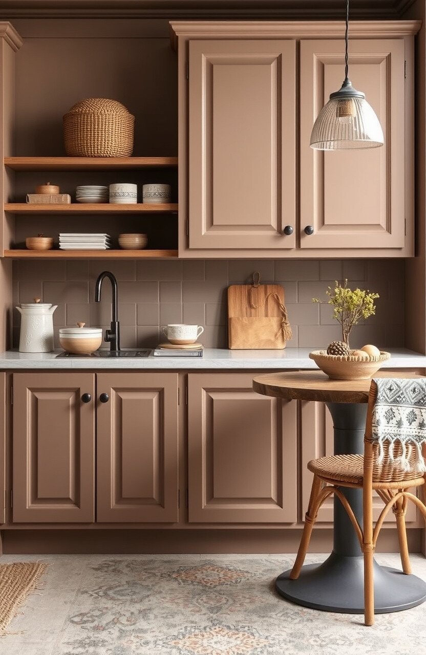 Terracotta Mushroom is bold and earthy, ideal for those who love a touch of the exotic. This color can transform your cabinets into a bohemian masterpiece.
