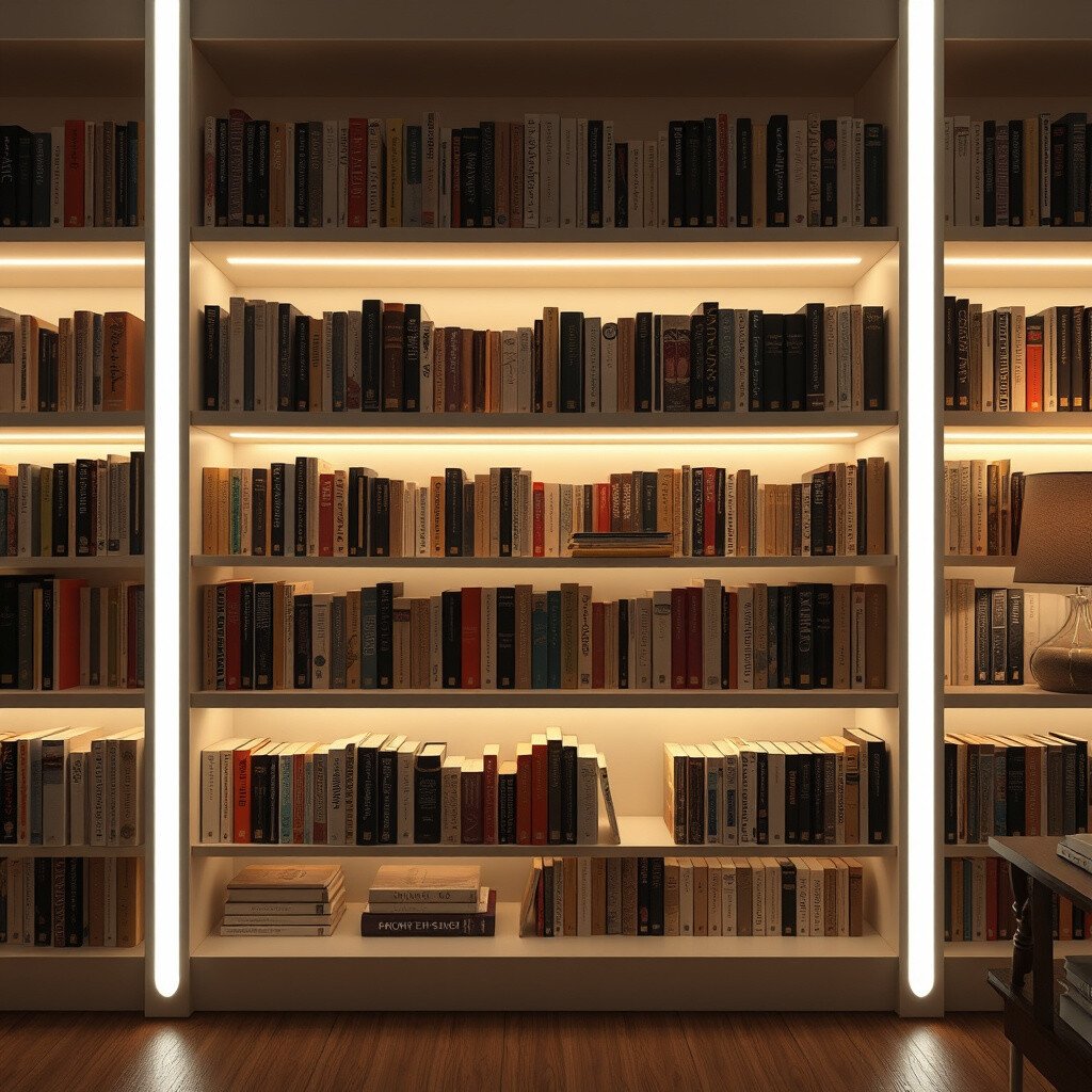 8. Elegant Bookshelf Lighting